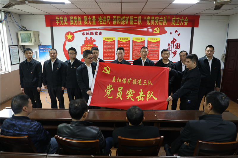 掘進(jìn)三隊(duì)黨支部書(shū)記秦剛在接過(guò)“黨員突擊隊(duì)”旗幟時(shí)表示:全隊(duì)上下務(wù)必堅(jiān)定信心,昂揚(yáng)斗志,發(fā)揚(yáng)嘉陽(yáng)人“特別能吃苦、特別能戰(zhàn)斗”的優(yōu)良作風(fēng),堅(jiān)定信心,戰(zhàn)勝困難,堅(jiān)決打贏這場(chǎng)“進(jìn)尺攻堅(jiān)戰(zhàn)”。黨群部部長(zhǎng)姚建軍希望掘三隊(duì)的黨員同志們要以黨史學(xué)習(xí)教育為契機(jī),提高思想認(rèn)識(shí),強(qiáng)化責(zé)任擔(dān)當(dāng),大力弘揚(yáng)煤礦“燃燒精神”,在急難險(xiǎn)重任務(wù)中彰顯黨員的先鋒模范作用,積極營(yíng)造“比、學(xué)、趕、超”的濃厚氛圍,以榜樣的力量帶動(dòng)全隊(duì)職工奮勇?tīng)?zhēng)先,以黨建引領(lǐng)促進(jìn)安全生產(chǎn)任務(wù)的圓滿完成。