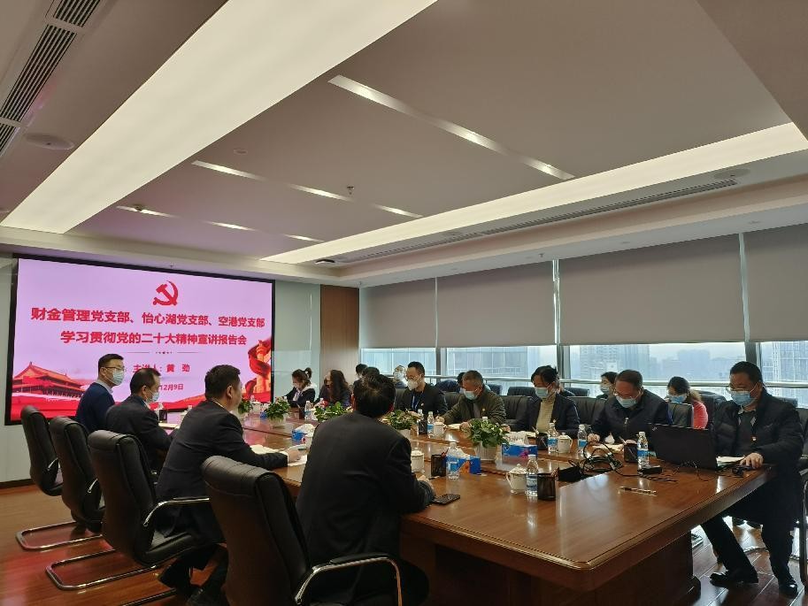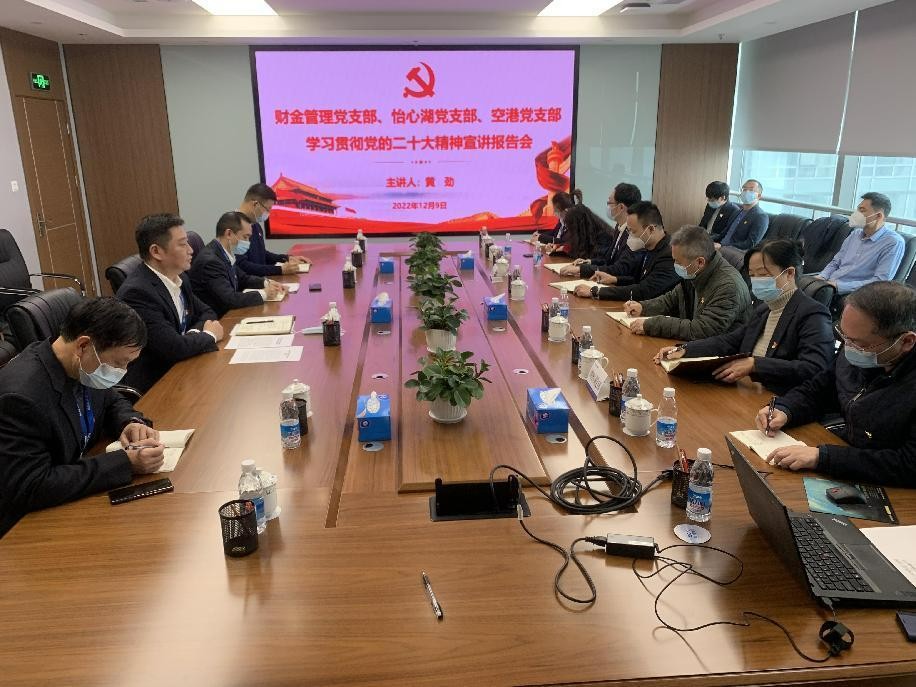 12月9日,為深入學(xué)習(xí)宣傳貫徹黨的二十大精神,集團(tuán)公司財(cái)務(wù)總監(jiān)黃勁赴財(cái)金管理黨支部、怡心湖黨支部空港黨支部宣講黨的二十大精神;會(huì)議怡心湖黨支部書記龔帝偉主持。