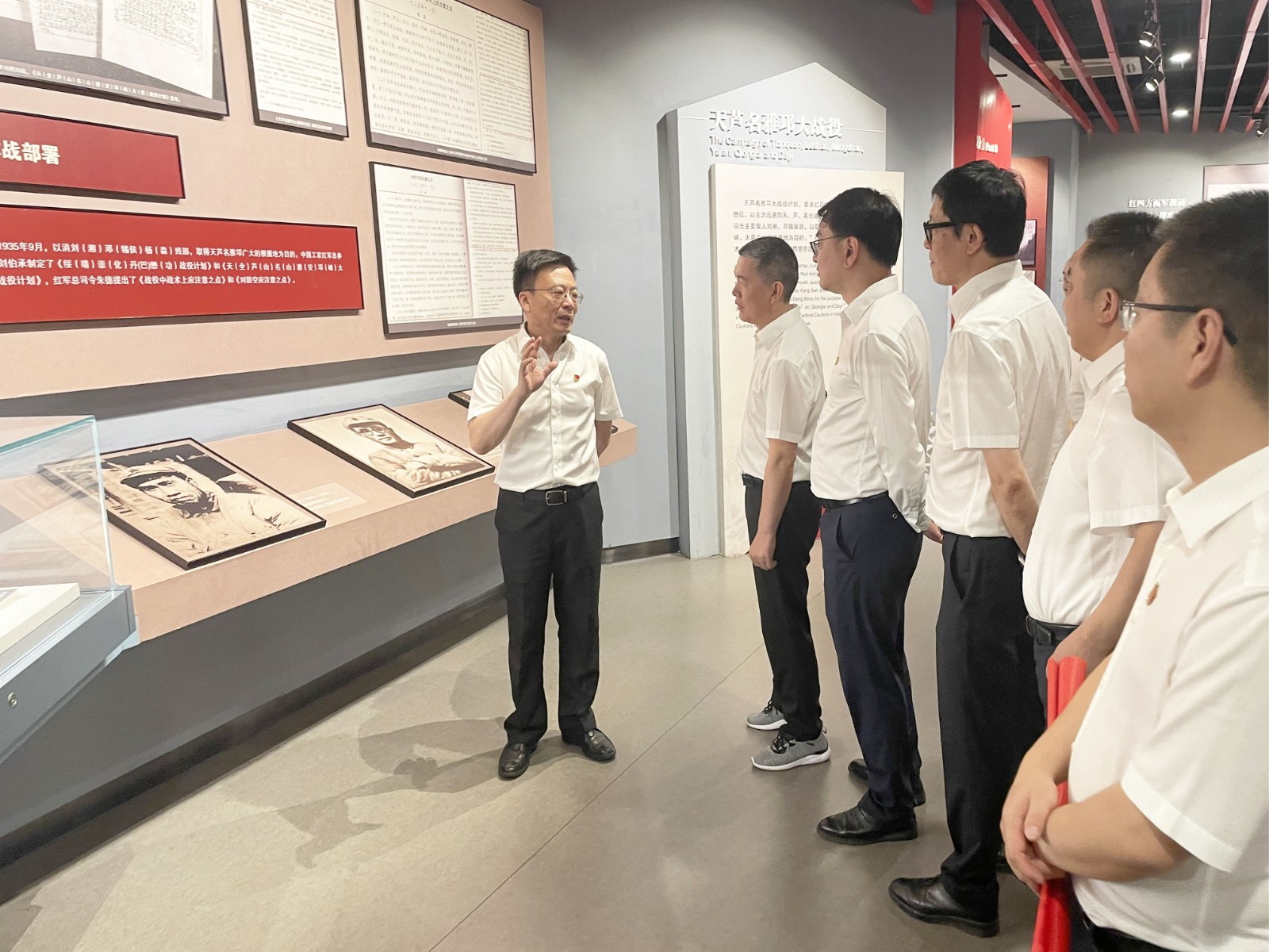 在紅軍百丈關(guān)紀念碑前,孫前元帶領(lǐng)大家重溫入黨誓詞,敬獻花籃,回望初心使命,告慰革命先烈,宣誓接續(xù)奮斗。在紀念館內(nèi),全體黨員通過學(xué)習(xí)了解紅軍1935年11月進入名山后特別是百丈關(guān)戰(zhàn)役史、紅軍長征歷史及徐向前、李先念等老一輩革命家的英雄事跡,感受革命先輩無私奉獻的崇高精神和偉大情懷,在緬懷革命先烈的豐功偉績中砥礪初心,進一步激發(fā)了奮斗精神。