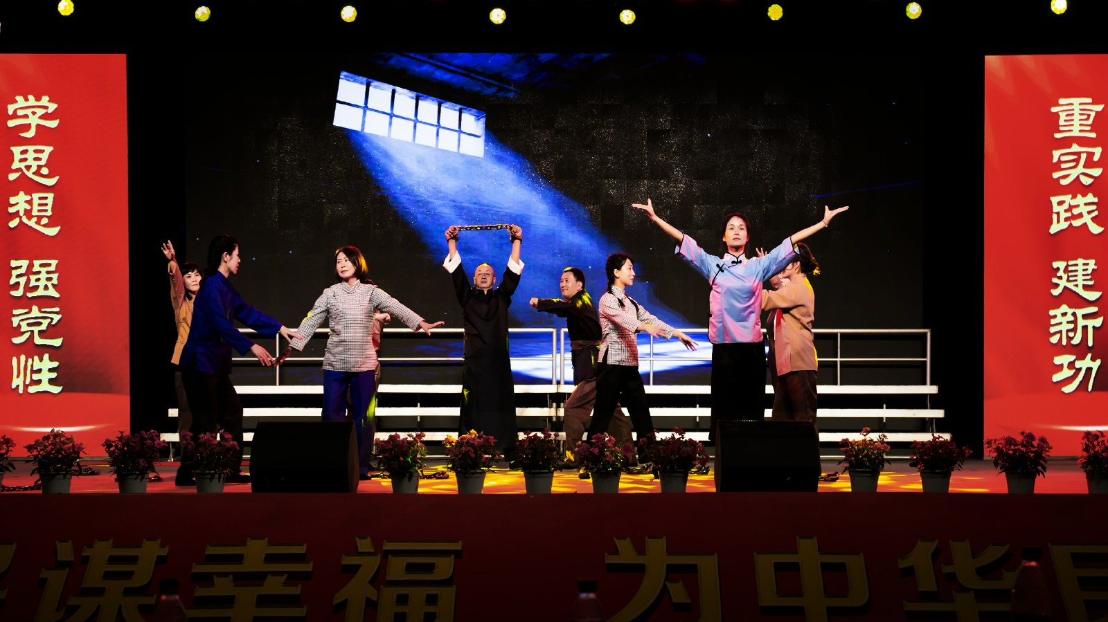 晚會(huì)中,精彩的文藝表演適時(shí)穿插,嘉陽煤礦的歌伴舞《新征程》展示了當(dāng)代礦工奉獻(xiàn)拼搏的精氣神,公司團(tuán)委朝氣蓬勃的青年以RAP形式《說唱嘉陽》,凸顯了厚重的嘉陽歷史和文化,綜合服務(wù)公司的情景劇《繡紅旗》再現(xiàn)了革命歲月黨員對革命堅(jiān)定的信仰和必勝的信心。晚會(huì)在全場鏗鏘有力的《嘉陽礦歌》聲中圓滿落幕。